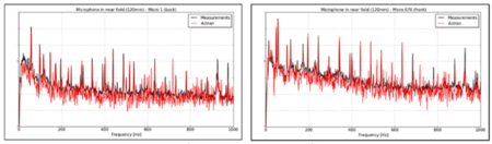 图9 近场麦克风预测和实验值对比 最后进行远场结果的仿真分析。通过对比近场和远场测量数据与仿真结果,验证模型准确性,并构建指向性图评估不同距离下的声辐射特性。
