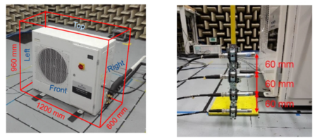 03工程案例 艾默生空调在处理HVAC(供暖、通风和空调)单元的远场噪声评估时遇到的一些困难: • 实际安装环境下在HVAC单元周围进行远场测量存在实际复杂性,这使得直接测量变得困难; • 对于HVAC单元的不同组件(如散热器、风扇、压缩机等)进行全面模拟需要巨大的投资,而且由于部分组件并非由HVAC单元的制造商直接生产,缺乏完整的数模来支持全面的模拟过程。 为了解决这些问题,开发了一种实验和数值混合应用的方法,用来评估HVAC单元在远场中的噪声辐射情况。 ZXDE 030E-TFD-454型户外冷凝机组(单风扇单元)被选作分析对象。首先执行近场噪声测量。在HVAC单元周围设置一个虚拟盒子,尺寸为1200x960x600mm,距离实际设备120mm。在这个盒子上布置了355组测量点,每组4个测点,总共1420个近场测量点。此外,在离设备1米和2米处进行76次远场声压测量。