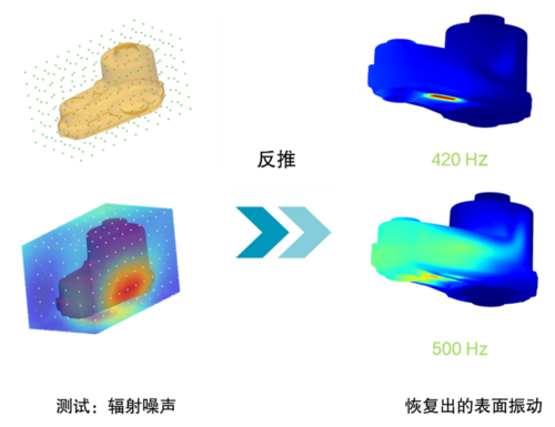 Actran声源识别方法连载(二):薄膜模态表面振动识别上期文章我们介绍了基于振动测试结果反推结构载荷,这一期我们将介绍第二种声源识别方法:基于噪声测试的薄膜模态表面振动识别方法。通过实际工作状态下的声音测量数据结合声源结构表面的空气薄膜模态,反推出各阶薄膜模态的参与因子,从而了解声源表面的真实振动情况。 图1 基于噪声测试的表面振动识别(空气薄膜模态方法)