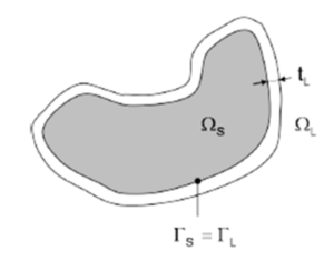 01薄膜模态的概念 针对机械结构(几何域Ωs)的声辐射问题,将其外部边界记作Γs。此边界与外部的声学层(几何域ΩL)相连,边界ΓL与Γs重合。假设声学层ΩL的厚度tL相对于声波长来说很小(tL << λ),即可以用这种具有无限小厚度的区域来替代原有的流体物理域。而薄膜模态(Pellicular modes)的概念即为与这个薄膜域有关的声学模态的集合。 图2 薄膜区域示意图 Actran软件当中的模态提取功能不仅可以针对实体结构或者有限体积的空气域进行模态提取,也可提取任意结构表面的薄膜模态。 薄膜模态可以用来评估任何声源的辐射声场问题。首先需要创建一个辐射数据库,计算麦克风与这些薄膜模态之间的传递函数;然后利用上述信息来解决声源识别问题。例如评估产生噪声场的声源表面法向速度分布、重构任意位置麦克风的响应。